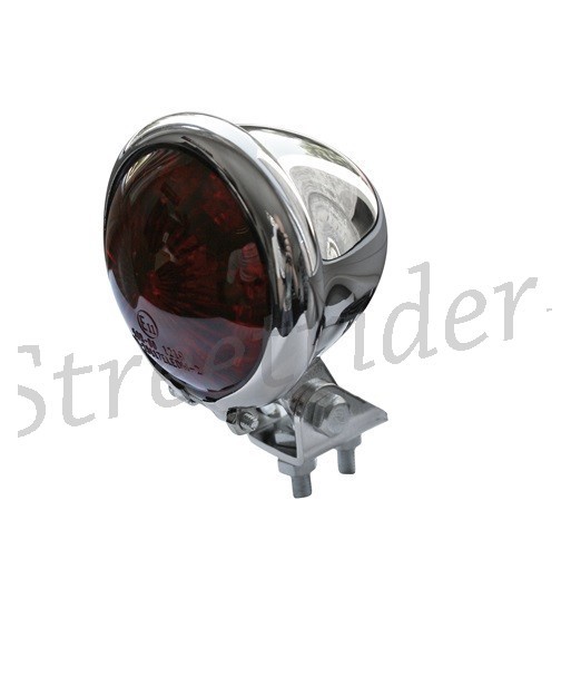 Rücklicht mit einem klassischen Look. Verchromtes Gehäuse mit rote Linse. Ideal für die Herstellung, Bobber, Stil, Cafe Racer, etc.