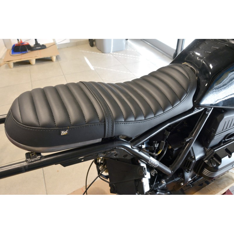 Tracker Tuck N 'Roll complete black 2-seater saddle. The quality is excellent and completes any cafe racer or Scrambler build.Complete with 3 fixing bolts/screws, support bracket and a curved steel frame tube specific for the BMW K75 and K100 models.