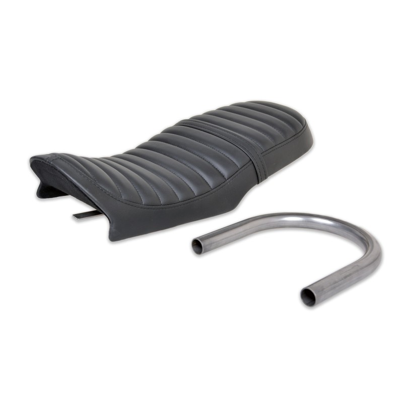 Sella Tracker Tuck N 'Roll nera completa a 2 posti.La qualità è eccellente e completa ogni realizzazione cafè racer o Scrambler.