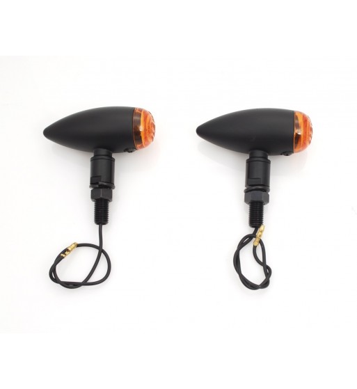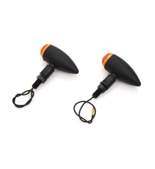 Questi indicatori di direzione Shin Yo Micro Bullet sono omologati e hanno un corpo in alluminio nero opaco rivestito.