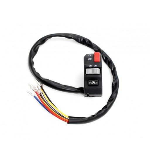 Blocco comando con 2 funzioni: On/Off e avviamento motore.Larghezza 27 mm.Adatto per manubri di diametro da 7/8" (22 mm.)